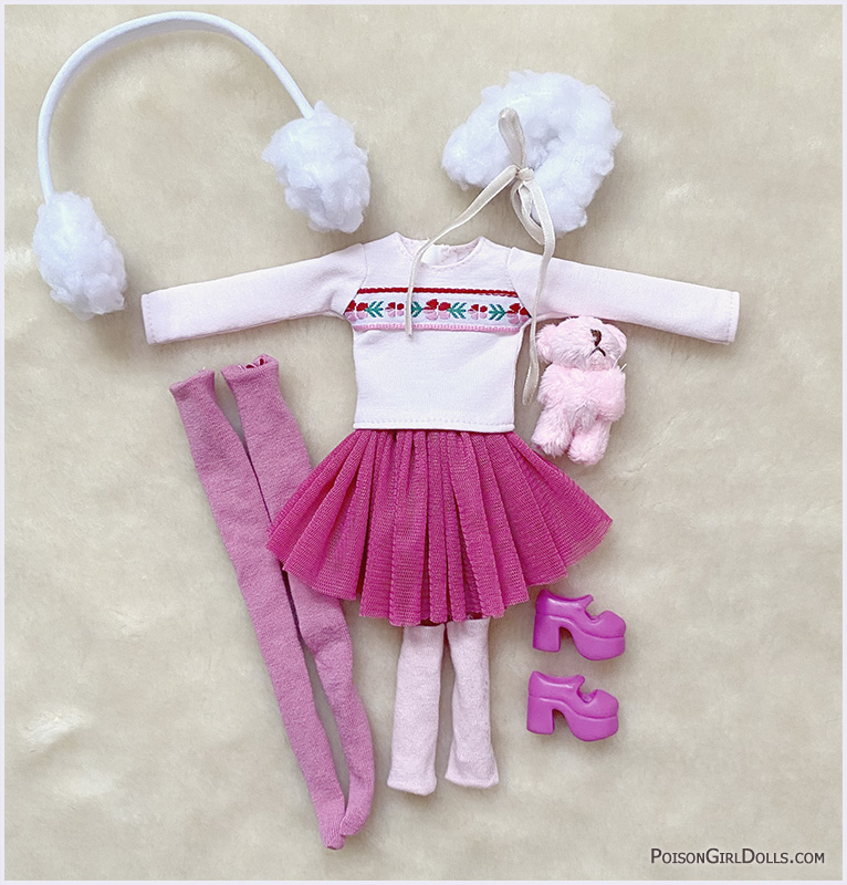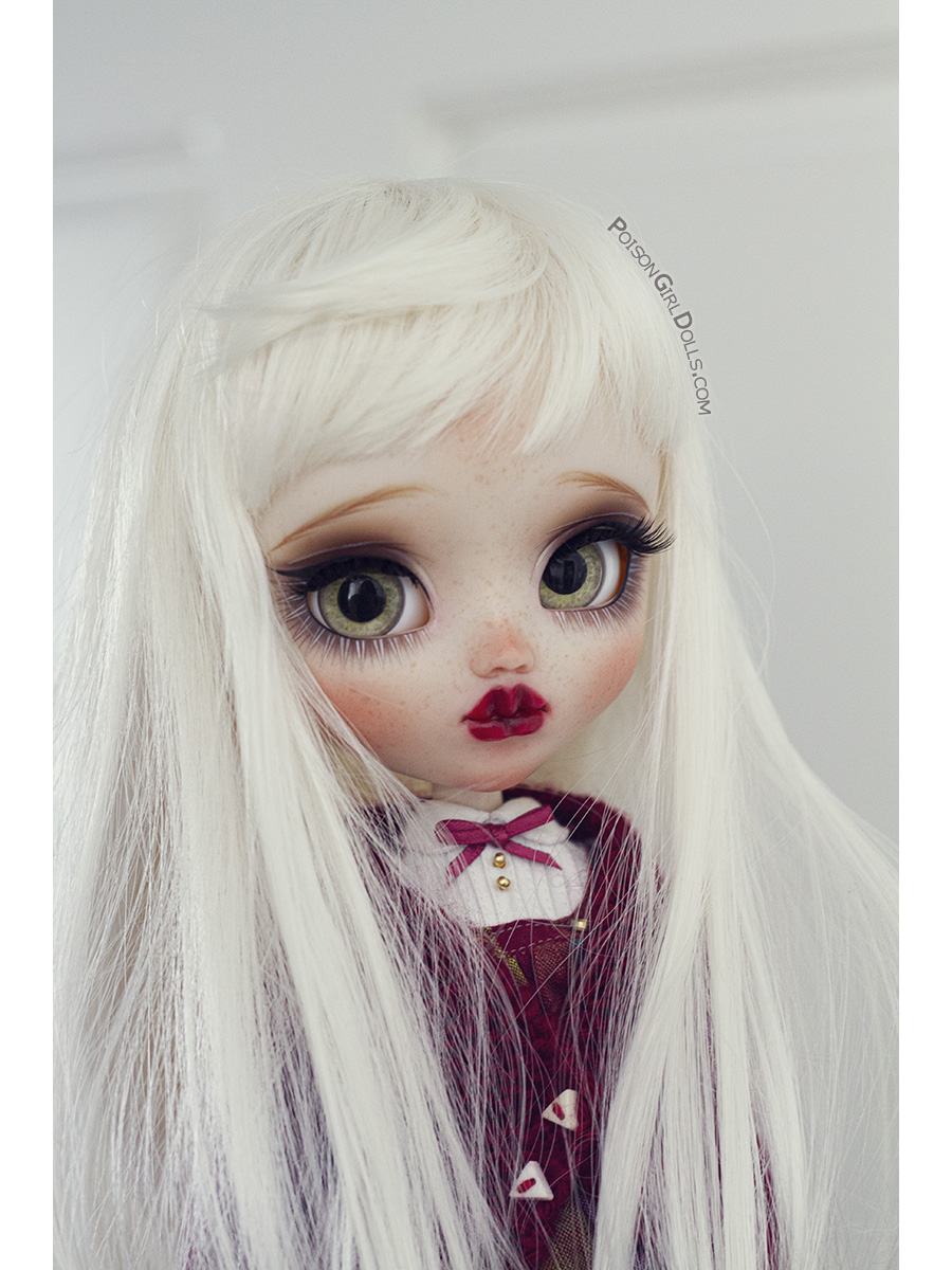 Little Juni is a fair skin Pullip. She will travel with the outfit you can see in the last pic. The rest of the accesories are not included.
